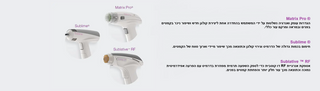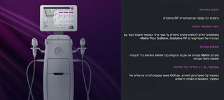 פלטפורמת עור RF מרובת יישומים זו, שנועדה לתקן, לתחזק ולשקם את העור בשלבים שונים של מסע ההזדקנות, כוללת את המוליך החדש של Matrix Pro ® , Sublime ו- Sublative RF כדי לספק טיפולים מותאמים אישית המבוססים על צרכי המטופל. מערכת המטריקס מיועדת לחידוש העור ולטפל בקמטים, כל זאת תוך יצירת נפח וחיזוק מבנה העור.